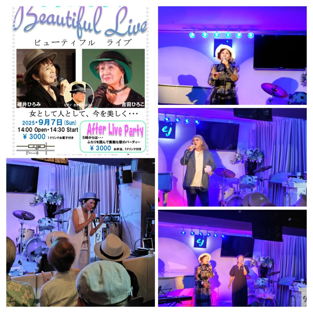 碓井ひろみさん、吉田ひろこさんによる、貴婦人の如く、エレガントでお洒落なライブ♬ 観客の皆様も股を閉じ背筋を伸ばしてご覧になられる…わけが無い!素敵な歌とトーク。アットホームで心和むひと時をいただきました。☺♡