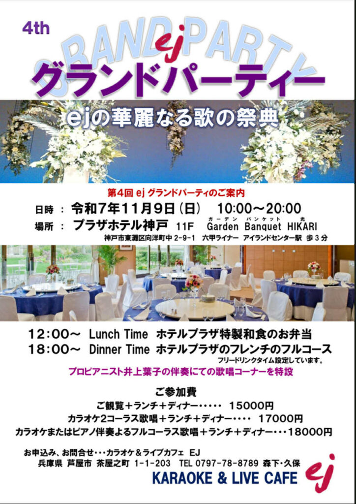 いよいよ11月9日はejの一大イベント「ejグランドパーティー」の開催です。今回も歌って♬食べて🍴超楽しいパフォーマンスをご堪能ください。