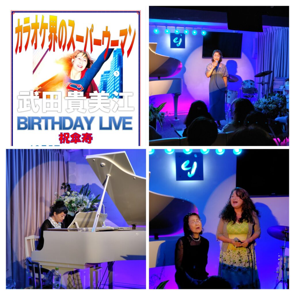 10月5日、武田貴美江さん、傘寿のLIVE♬ いつもお元気で明るく、仕事をしながらの残りの時間は大好きな歌に捧げる・・・本当にタフなお姉様!得意の演歌から今回も英語の歌にチャレンジ。満席のなか、素敵ライブとなりました。