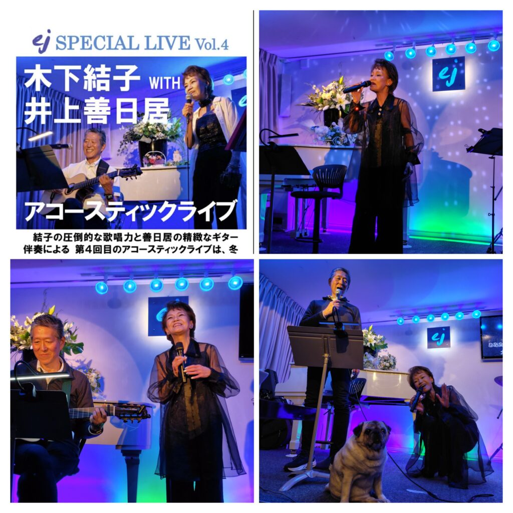 みなさまの熱いご要望に従い、恒例になりました木下結子さん(歌手)、井上善日居先生(ギターリスト・作曲家)によるアコースティックライブ、今年も開幕。(2月21日)温かい時間が流れました。